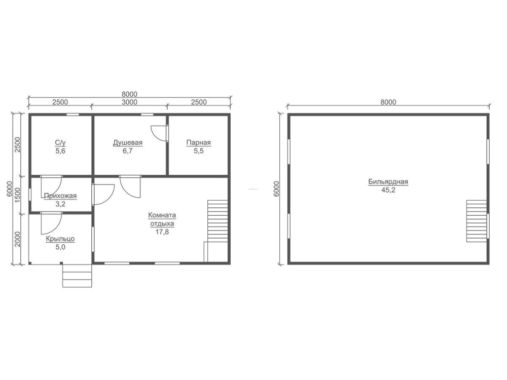 | Двери | Входная- металлическая, утеплённая (Россия). Межкомнатные- филёнчатые. В парную- клиновая (банная). | Отсутствуют. |