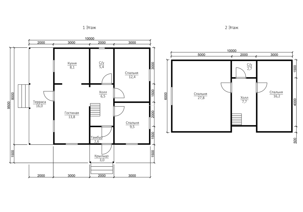 Сруб с мансардой: 1-ый этаж- 2,5 м. (18 венцов) 2-ой этаж (мансарда)- 2,4 м. Сруб в полтора и два этажа: 1-ый этаж 2,5 м ±4 см. (18 венцов) 2-ой этаж 2,5 м ±4 см. каркасные аттиковые стены (боковые) высотой 1,5 м. в полутораэтажном доме 2,5 м ±4 см (поднят брусом на 18 венцов) в двухэтажном доме. |