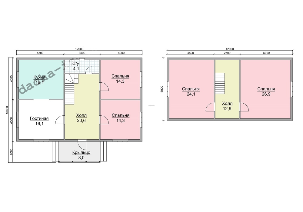 | Крыша | Двускатная, ломаная или вальмовая в соответствии с проектом. | |