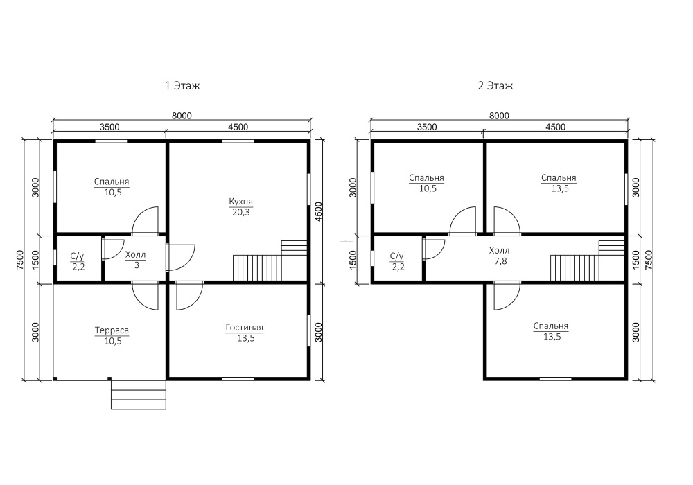 Самые популярные размеры коттеджей и домов: мини - до 50 м2 (как правило, одноэтажные); компактные - от 70 до 100 кв. М (обычно двухэтажные); большие - от 150 квадратных метров и более.