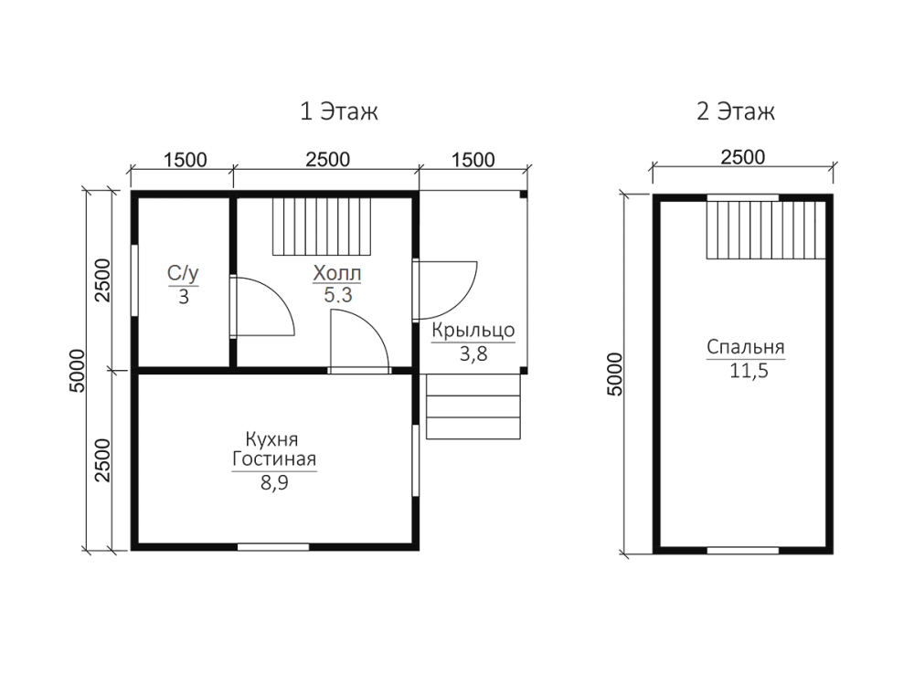 Самые популярные размеры коттеджей и домов: мини - до 50 м2 (как правило, одноэтажные); компактные - от 70 до 100 кв. М (обычно двухэтажные); большие - от 150 квадратных метров и более.