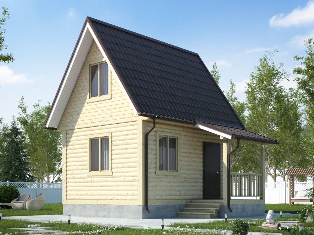 Вы имеете возможность выбрать нужный вид кровли: четырехскатная, двускатная и вальмовая. Двухскатную считают наиболее популярной у малометражных построек.
