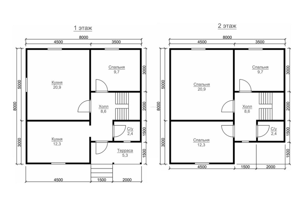 Самые популярные размеры коттеджей и домов: мини - до 50 м2 (как правило, одноэтажные); компактные - от 70 до 100 кв. М (обычно двухэтажные); большие - от 150 квадратных метров и более.
