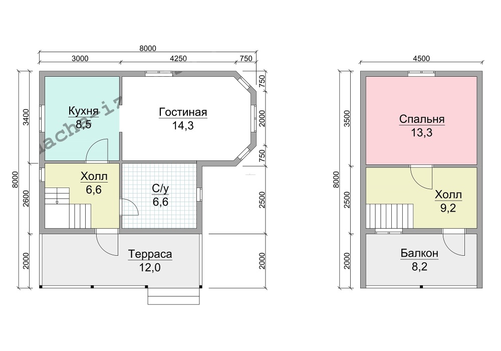 | Крыша | Двускатная, ломаная или вальмовая в соответствии с проектом. | |